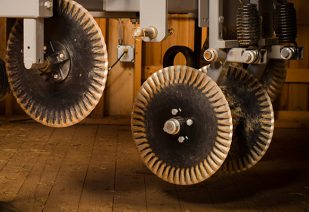 This plastic retrieval equipment cuts down on man-hours needed to remove plastic mulch. It minimizes trash, vine and soil debris and wraps the plastic into two removable bundles.